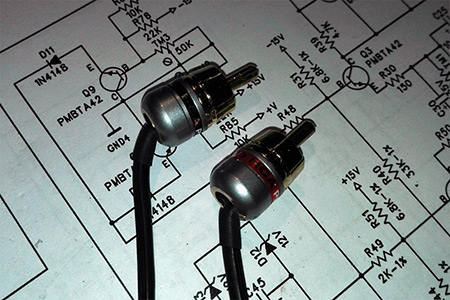 Kable sygnałowe od strony radia zakończyłem standardowo wtykami RCA i nie wymaga to specjalnego opisu, ale wspominam o tym, ponieważ udało mi się zakupić stosunkowo krótkie wtyki, które skróciłem jeszcze odcinając część obudowy. Jest to o tyle ważne, że ilość miejsca za radiem jest najczęściej bardzo ograniczona i konieczne jest zastosowanie możliwie krótkich wtyków.