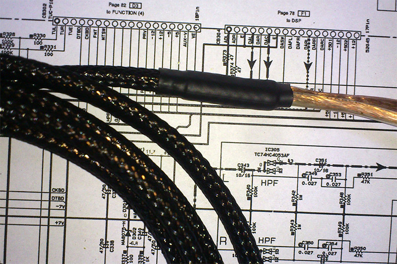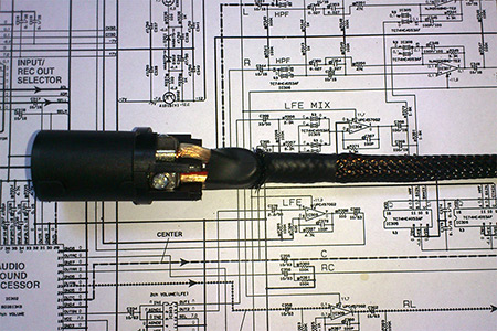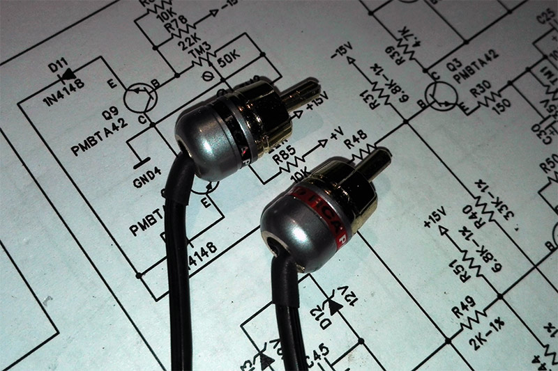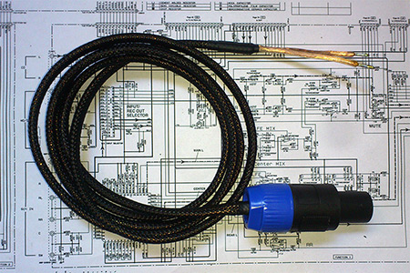 Chodzi oczywiście o kabel, którym sygnał audio przesyłany jest z radia do reszty systemu. Zastosowałem tu kabel sygnałowy zakupiony kiedyś na metry, miedziany, z podwójnym ekranem, który oczywiście odpowiednio pociąłem i zakończyłem niezbędnymi wtykami. Osobiście wystrzegam się, ogólnie rzecz biorąc, wszelkich kabli gotowych na rzecz kabli przygotowanych samodzielnie, gdyż lubię wiedzieć, co tak naprawdę w kablu "siedzi", co w "gotowcu" jest niemożliwe do zweryfikowania. Ot, takie małe zboczenie ;)