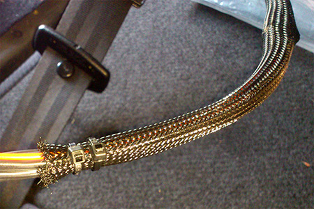 Przy realizacji okablowania pamiętajcie, aby wykonując wszelkie połączenia, szczególnie te wysokoprądowe, zwracać szczególną uwagę na staranność. Kable doprowadzające zasilanie do wzmacniaczy powinny być zakończone konektorami i koszulkami termokurczliwymi (tak, jak na foto poniżej). Bezpiecznik w instalacji car-audio jest zazwyczaj na tyle duży, że może nie zadziałać podczas minimalnego zwarcia pomiędzy pojedynczymi "włoskami" kabli, które gdzieśtam sobie cichaczem "wylazły" i stykają się, iskrząc i grzejąc się, stwarzając tym samym ryzyko pożaru auta! To nie są żarty. Bezpieczeństwo przede wszystkim!