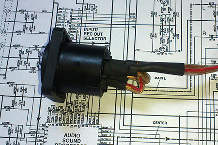Kable sygnałowe od strony radia zakończyłem standardowo wtykami RCA i nie wymaga to specjalnego opisu, ale wspominam o tym, ponieważ udało mi się zakupić stosunkowo krótkie wtyki, które skróciłem jeszcze odcinając część obudowy. Jest to o tyle ważne, że ilość miejsca za radiem jest najczęściej bardzo ograniczona i konieczne jest zastosowanie możliwie krótkich wtyków.