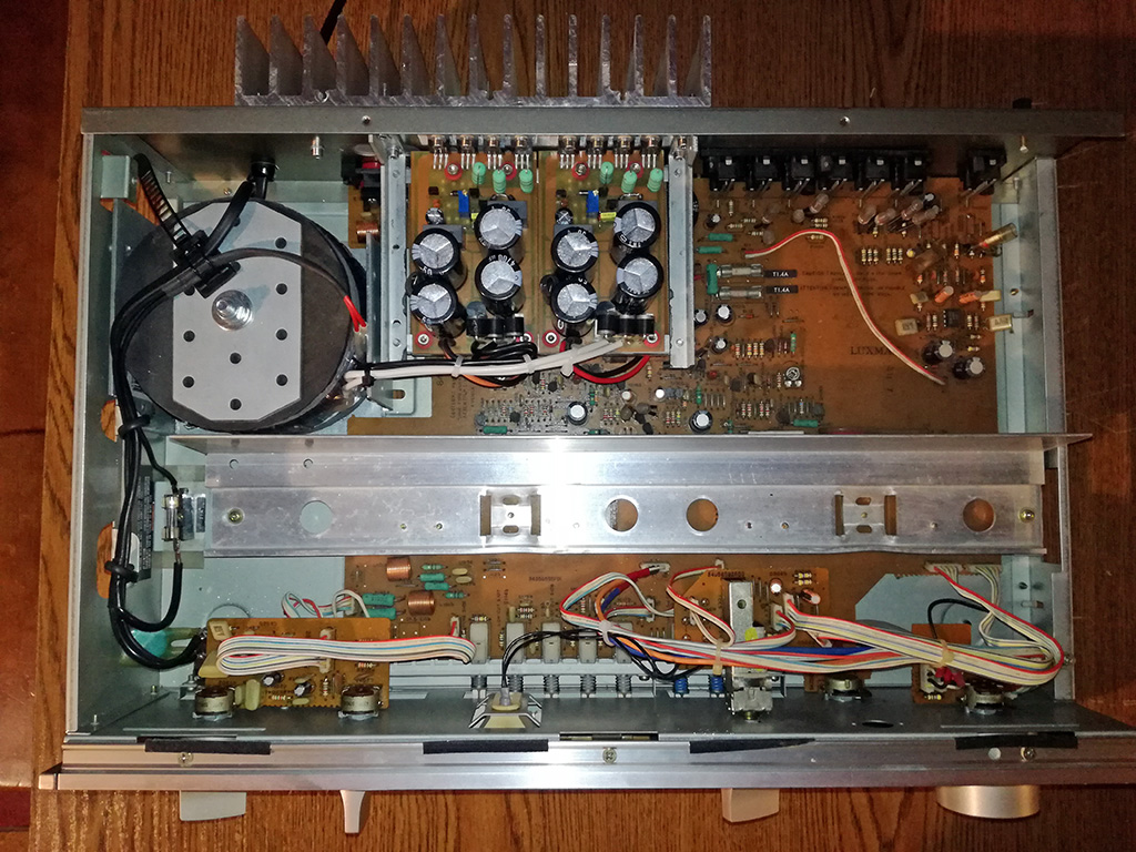 A tak prezentuje się wnętrze Luxmana z gotowym, zainstalowanym, nowym zasilaczem stabilizowanym.